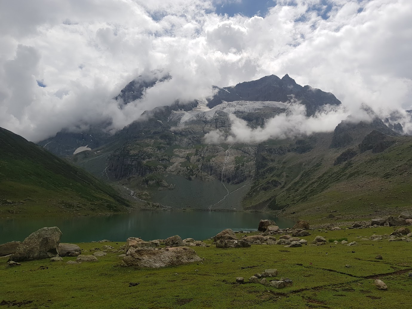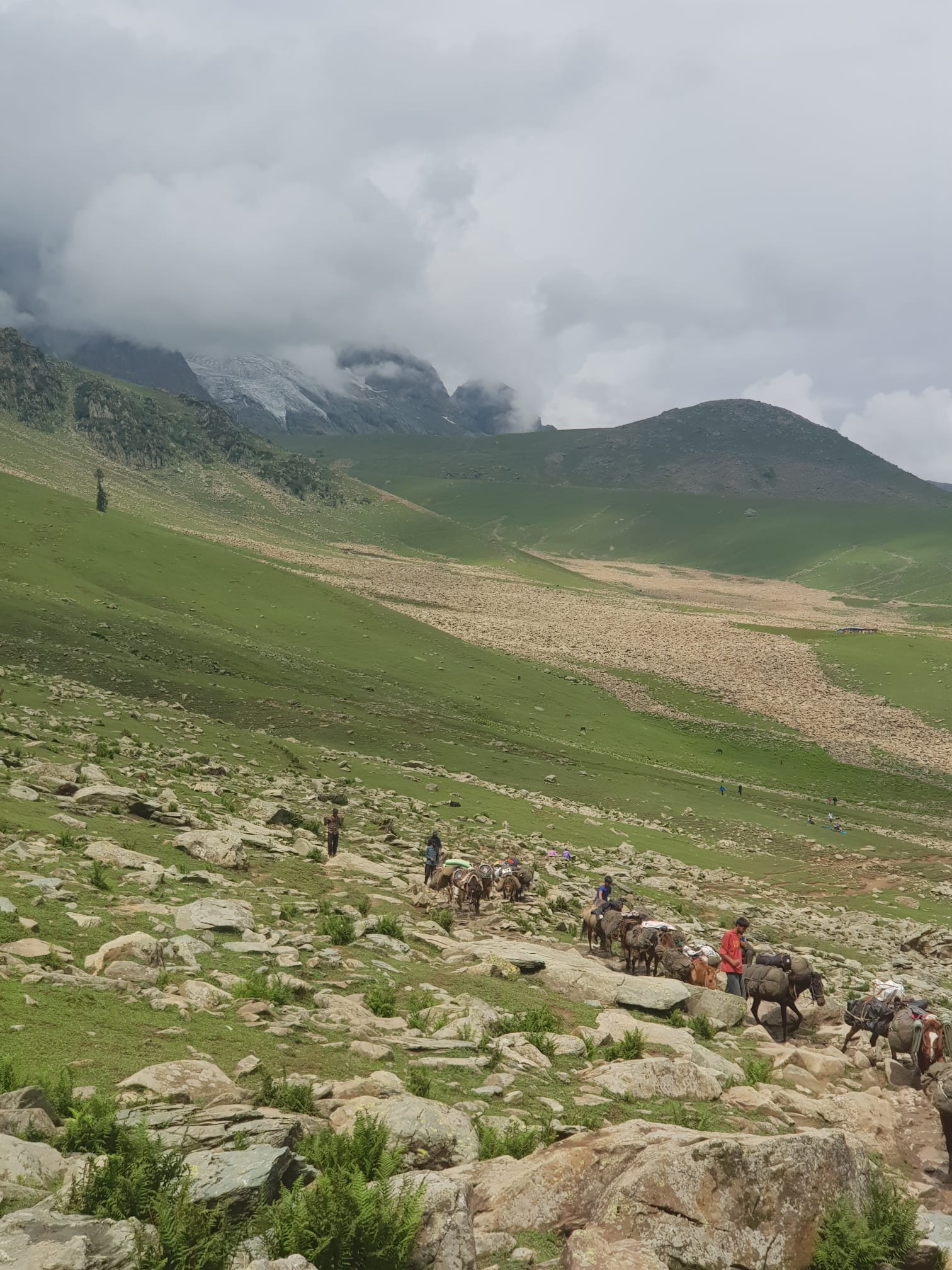 Kashmir '24My second trip to Indian Kashmir, summer 2024Tom HepworthOctober 4, 2025I went trekking in kashmirHarmukh from the bank of Nundkol lakeTanveer and Irshad sheltering from a showerRahat on the steep ascent from NaranagThe open fields between the army camp and gangbal lakeThe temple complex and silk road refuge in Naranag village
